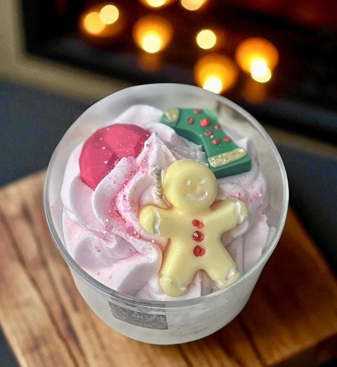 Laissez-vous tenter par notre bougie artisanale Barbe à Papa, ornée d’une chantilly rose et d’une décoration festive unique pour chaque pièce. Parfaite pour créer une ambiance chaleureuse, sublimer votre décoration de Noël et offrir un cadeau délicieusement original.