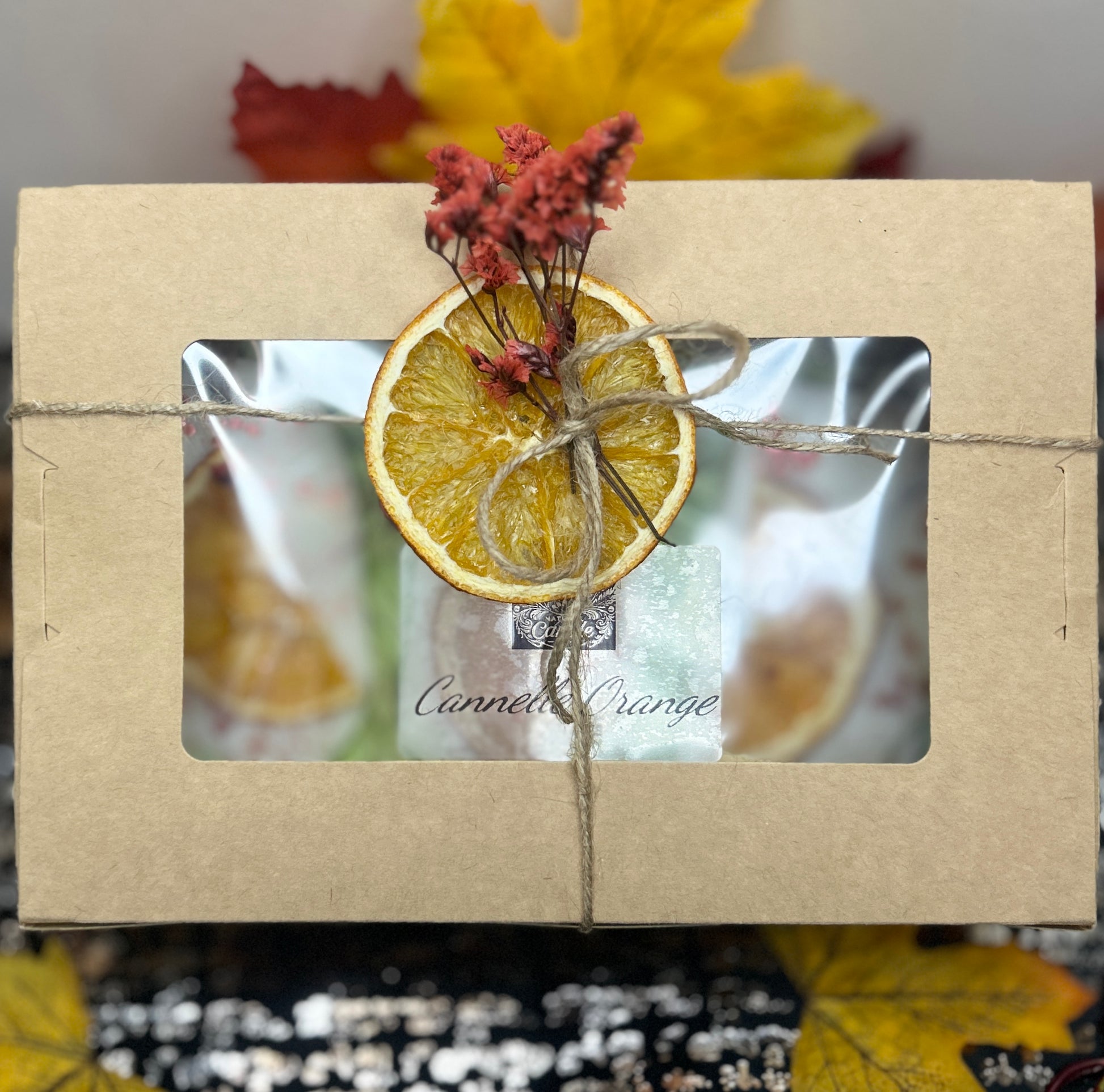 Coffret de 3 suspensions parfumées Cannelle Orange Offrez à votre intérieur une atmosphère chaleureuse et gourmande grâce à ce coffret artisanal de trois suspensions parfumées. Composées de cire de soja naturelle, elles diffusent un parfum délicat et épicé de cannelle et d’orange, parfait pour instaurer une ambiance cosy toute l’année.