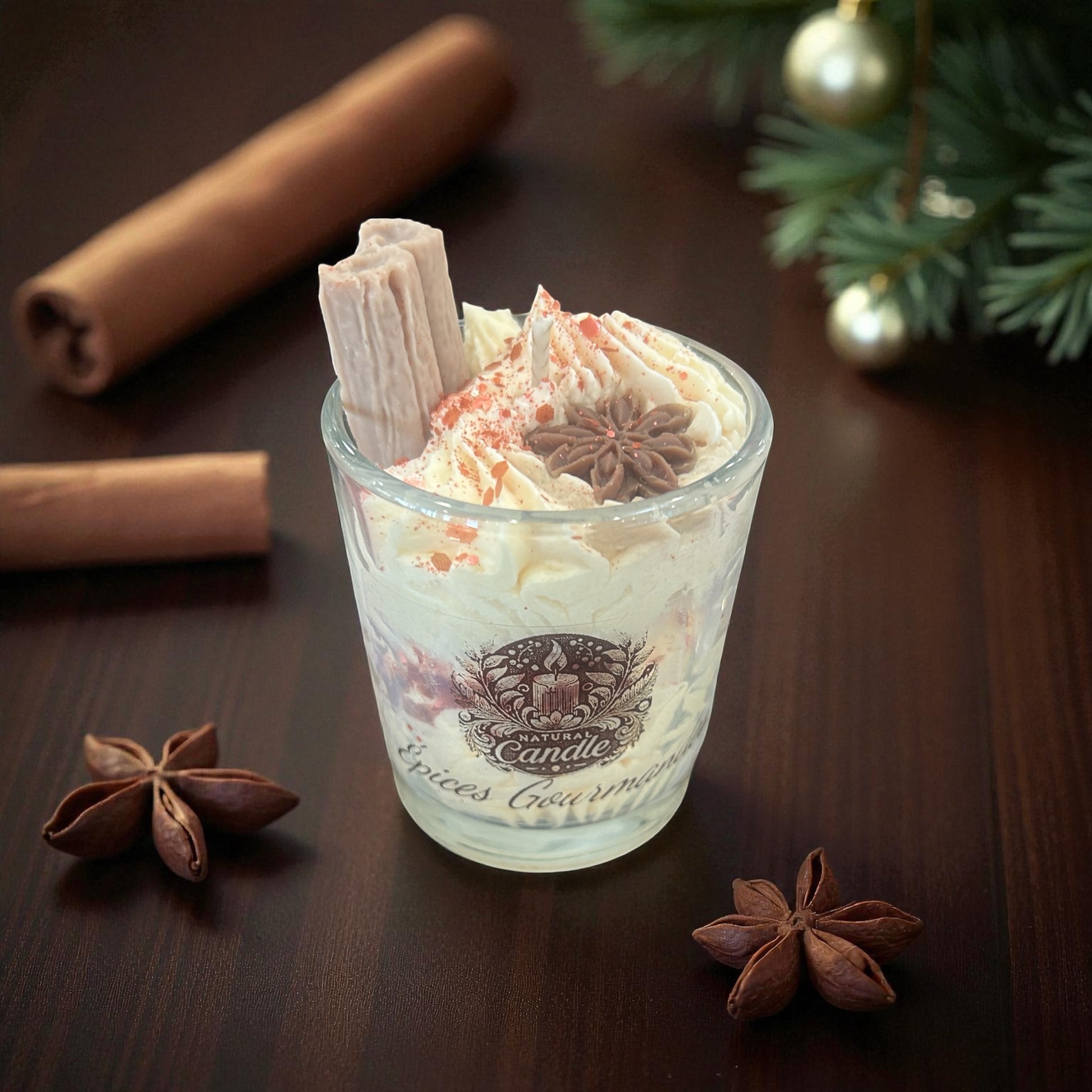 Cette bougie de 90g offre 18 heures de combustion et diffuse une fragrance délicate alliant gourmandise, épices et vanille.